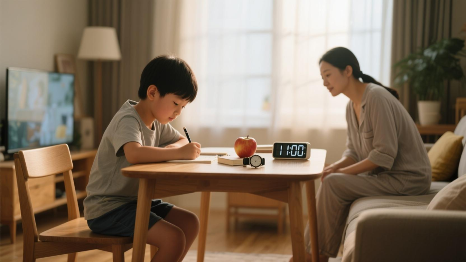 这样,就能把频繁的催促,转化成用工具来提醒,也能把争夺手机,转化成遵守规则,从而消除心理上的对抗感。